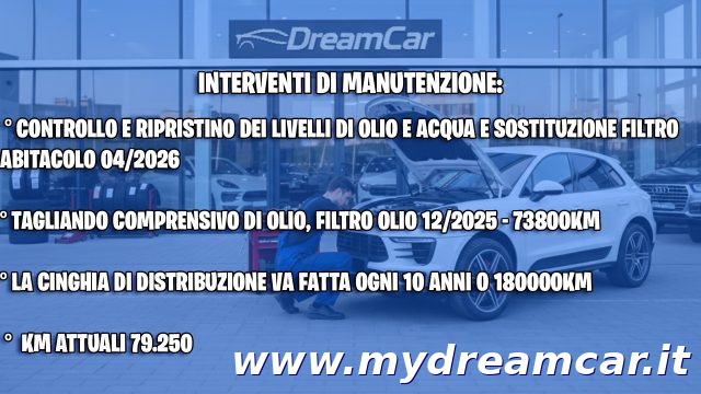 ABS, Airbag laterali, Airbag testa, Bluetooth, Bracciolo, Cerchi in lega, Chiusura centralizzata, Climatizzatore, Controllo trazione, Cruise Control, ESP, Fari Xenon, Fendinebbia, Frenata d'emergenza assistita, Interni in pelle, Regolazione elettrica sedili, Sensore di luce, Sensore di pioggia, Sensori di parcheggio posteriori, Servosterzo, Navigatore satellitare, Specchietti laterali elettrici, Telecamera per parcheggio assistito